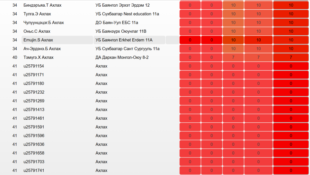2025-2026 оны хичээлийн жилийн онлайн олимпиад-03 2025 оны 10 сарын 25-ны бямба гарагт амжилттай зохион байгуулагдаж өндөрлөлөө. Энэхүү олимпиадад 24 багш, ахлах ангийн 61 сурагч оролцож 4 цагийн хугацаанд тус бүр 3 бодлого бодож уралдлаа. Энэхүү олимпиад нь ахлах ангилалын 3 дахь, багш ангилалын 2 дахь онлайн олимпиад юм.